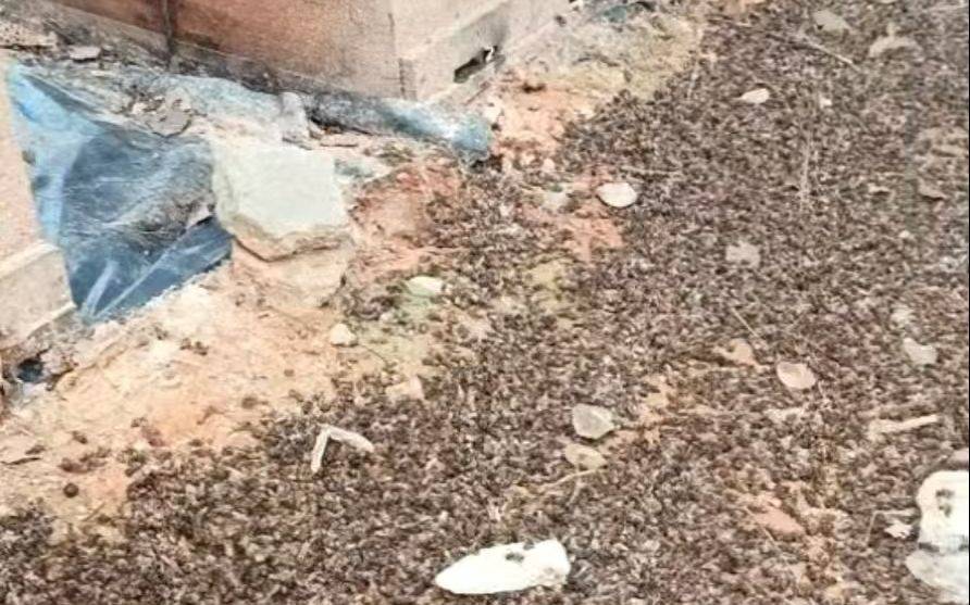 彭先(xian)生蜂箱附近的(de)死蜂。受访者供图