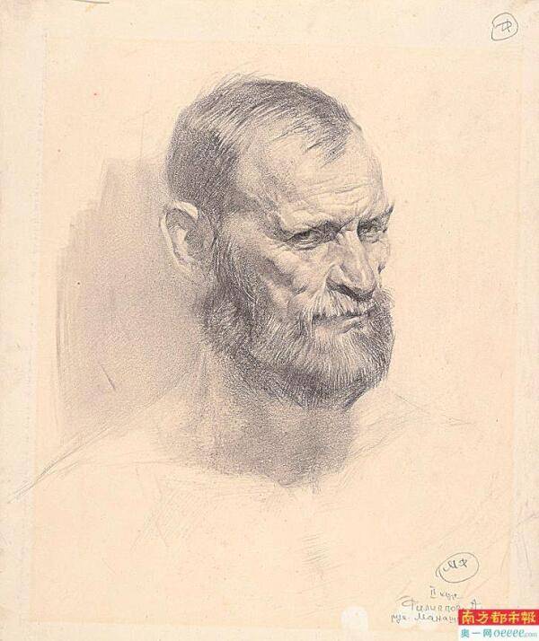 《男(nan)人头像》,阿列克(ke)谢(xie)·菲利(li)波夫,50х40cm,素描。