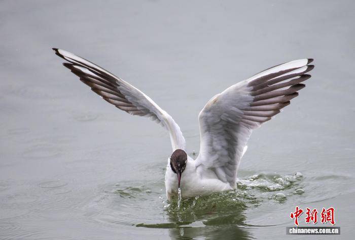 3月17日,一(yi)只红嘴鸥正在(zai)汉中(zhong)汉江水面上觅食。周祥(xiang) 摄
